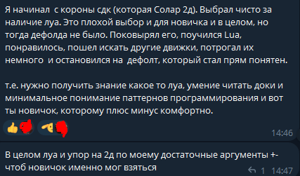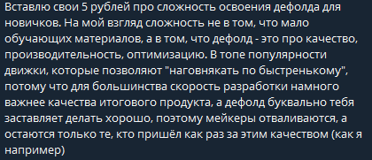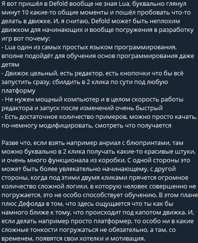-Defold не хватает как профессионалов, так и новичков, но “полных новичков” не хватает ещё больше.