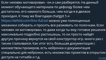 На основании выдуманного закона "О схожести во взглядах". Приказываю вам создать одну единицу обучающего/развлекательного контента, связанного с Defold как для новичков, так и для опытных бойцов.