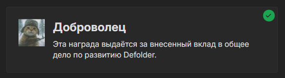 Эта награда — знак отличия, по которой мы понимаем, что вам не всё равно на русскоговорящее сообщество в Defold. И вы поддерживаете нас в создании контента для русскоговорящих новичков на defolder.com.