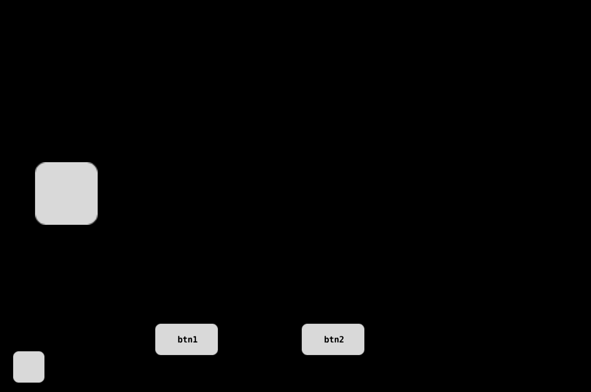 - переходим в menu.gui, создаем два бокса в нодах, называем btn1, btn2, добавим обоим текст text1, text2