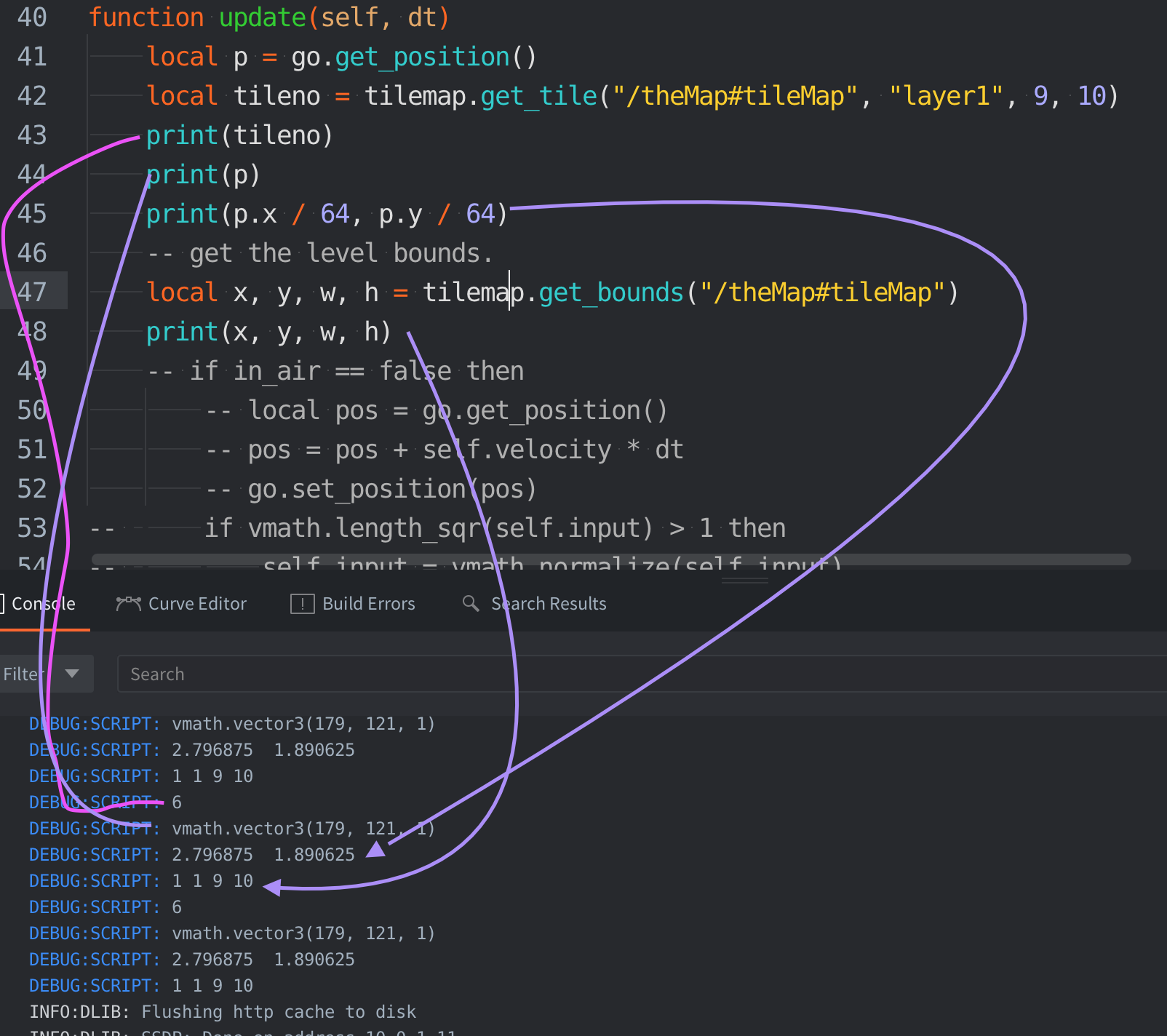я хочу получить номер тайла на позиции игрока например, но получаю ошибку