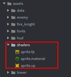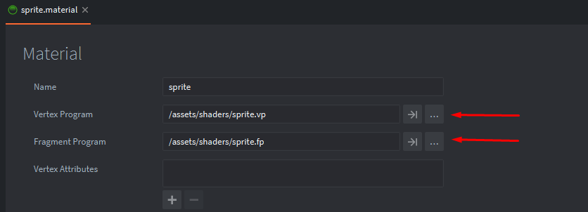 Добавь фрагментный и вершинный шейдеры (скопированные ранее файлы с расширением .fp и .vp):