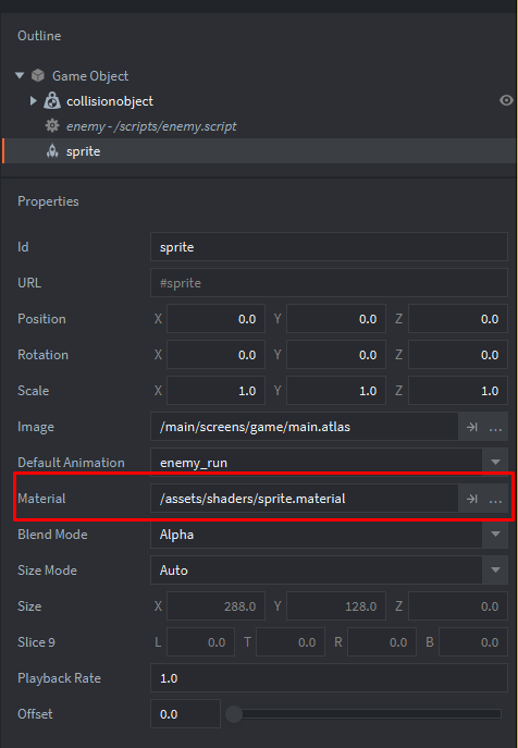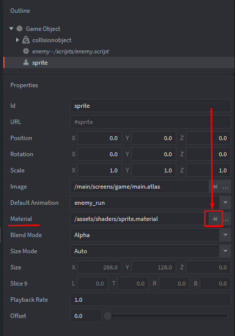 Зайди в компонент sprite, твоего игрового объекта и нажми на ... в поле materials: