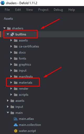 Перейдите в строенную папку проекта builtins, а затем в папку materials: