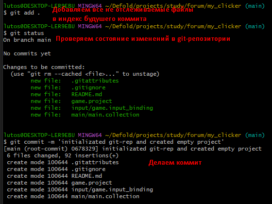 Добавляем файлы в индекс и делаем коммит: