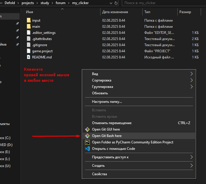 Откроем GitBash: