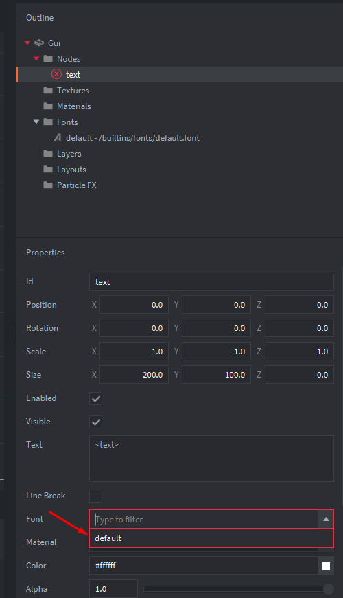 main.gui и добавим фон по умолчанию:Добавим текстовую ноду: