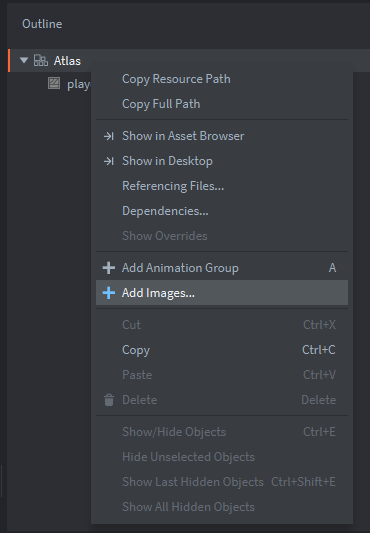 Добавим наше изображение игрового персонажа в атлас: