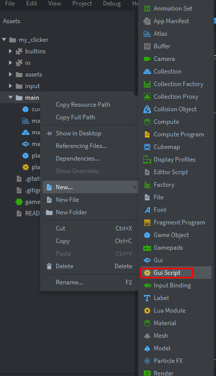 Теперь создадим gui-скрипт main.gui_script:
