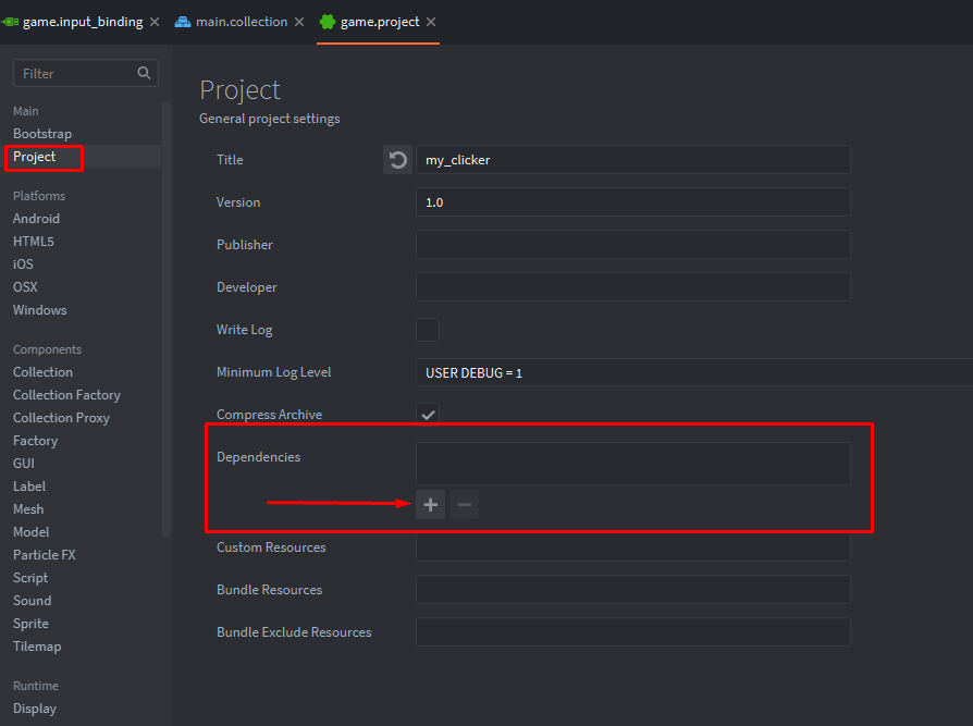 main.collection и добавим игровой объект cursor:Запустим проект с помощью комбинации