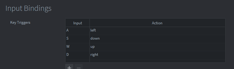action left:Создадим привязки ввода для остальных клавиш, соответствующих передвижению вверх/вниз/вправо. Стандартное управление WASD: