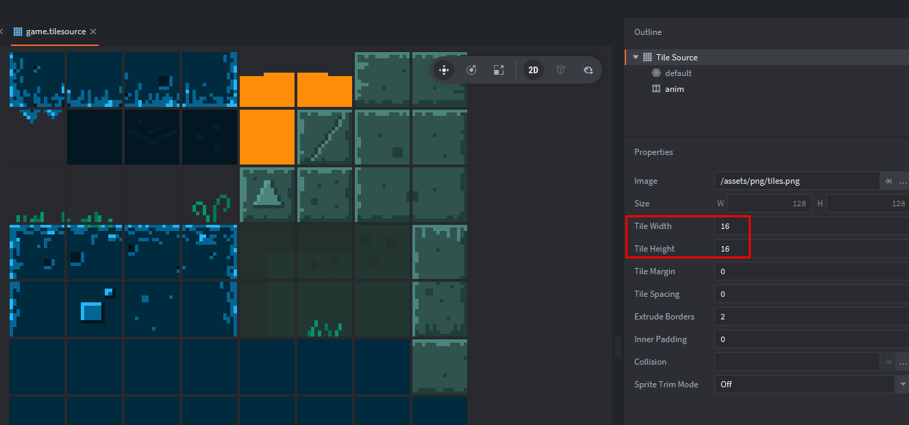 game.tilesourse и установим тайл для анимации, я установлю такие значения:Не ставьте