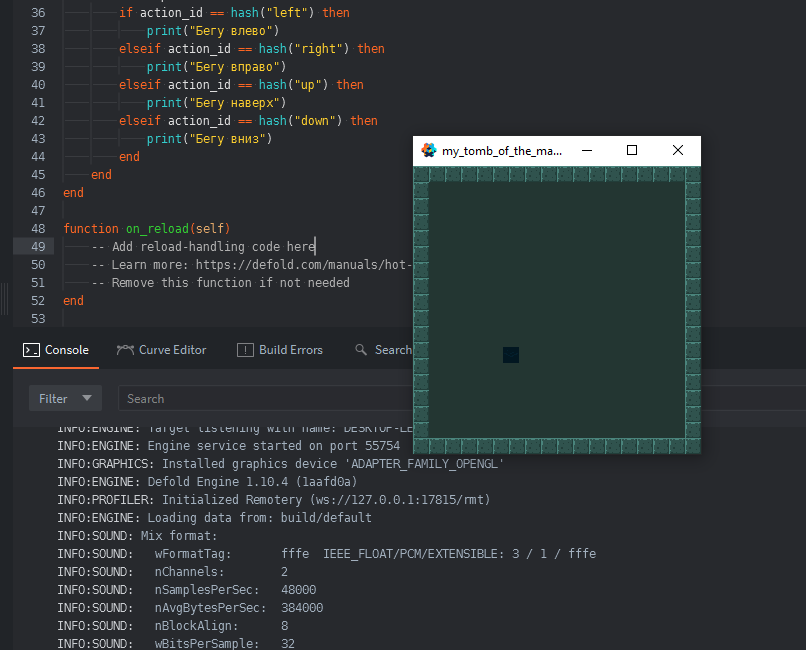Теперь сохраним проект(ctrl + s), соберем билд и запустим игру(ctrl+b):
