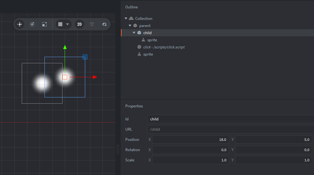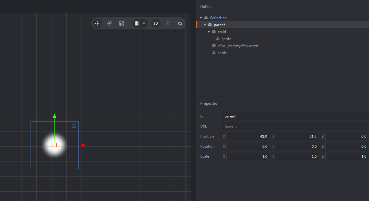 Если мы будем использовать по отношению к игровому объекту go.get_position(), то мы получим локальную позицию по отношению к родительскому игровому объекту.