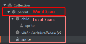 На этом скриншоте компоненты находятся в локальном пространстве родительского игрового объекта вместе с дочерним игровым объектом: